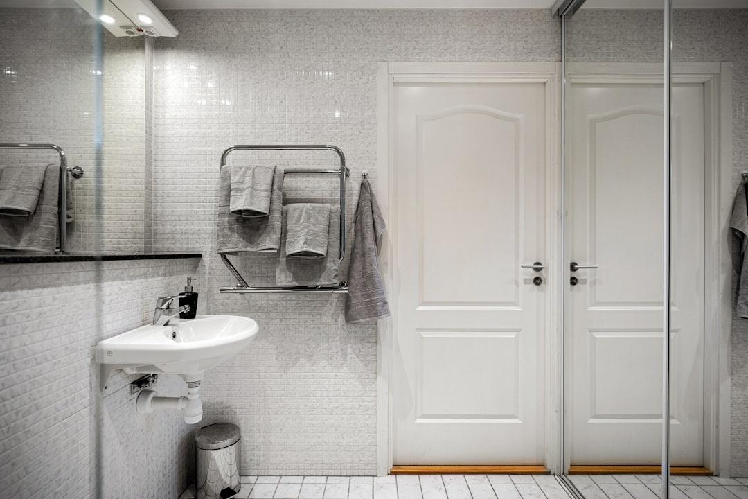 На этом этапе мы уложим плитку, поклеим обои, покрасим потолок и установим двери